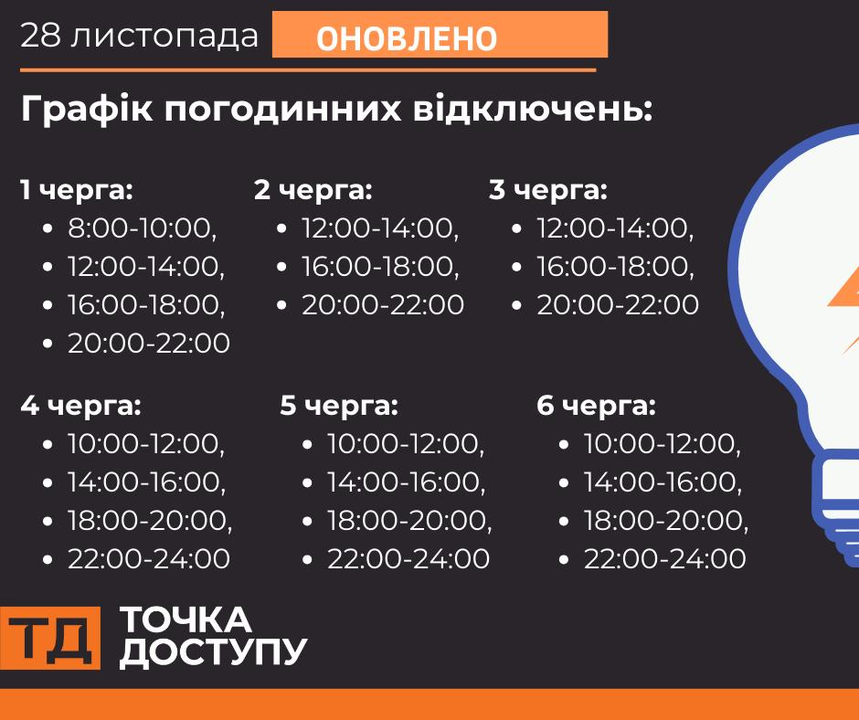 На момент підготовки цього матеріалу офіційно оприлюднених графіків відключення електроенергії у Кропивницькому саме на 28 листопада 2025 року вже є.