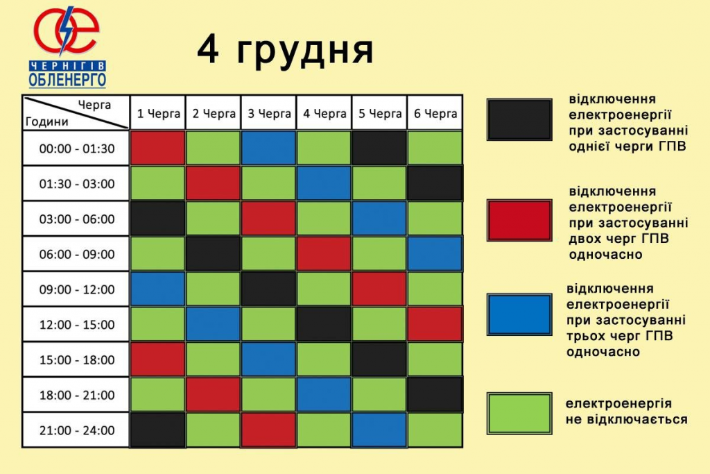 Графік відключення світла на Чернігівщині на 4 грудня: подробиці