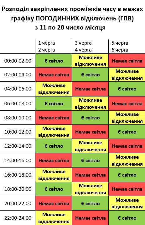 Часто такі рішення вивішуються на каналах обленерго, у місцевих громадах або на офіційних сторінках у соцмережах, адже саме там споживачі отримують найбільш швидкі повідомлення. Через постійно змінні фактори, що впливають на енергосистему, навіть попередньо оприлюднені графіки іноді коригуються упродовж доби.