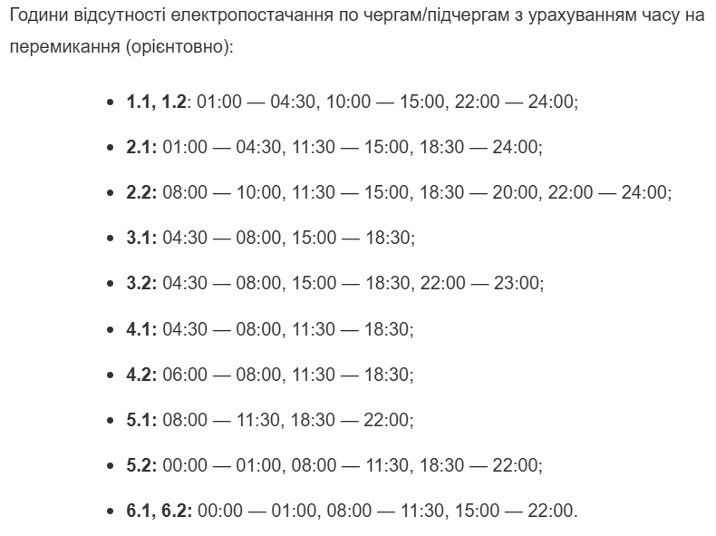 Окремо раніше був презентований графік відключення світла на Миколаївщині на 1 січня.